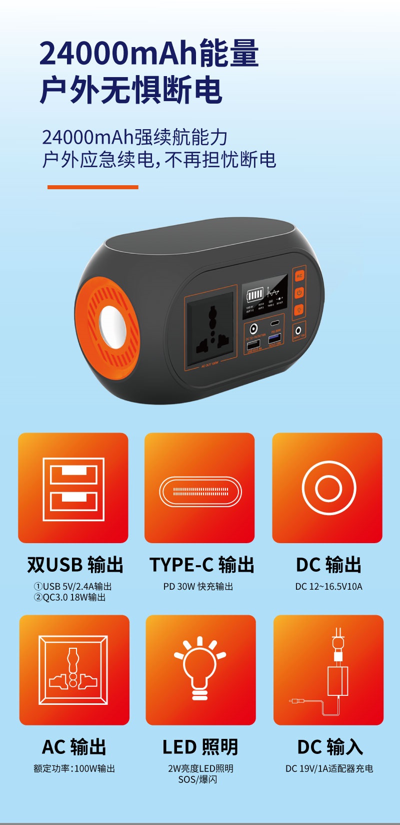 小容量戶外便攜應急移動電源100W手機平板多功能儲能電源工廠批發(fā)